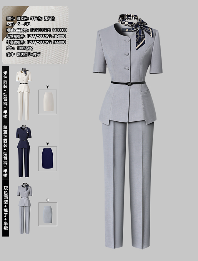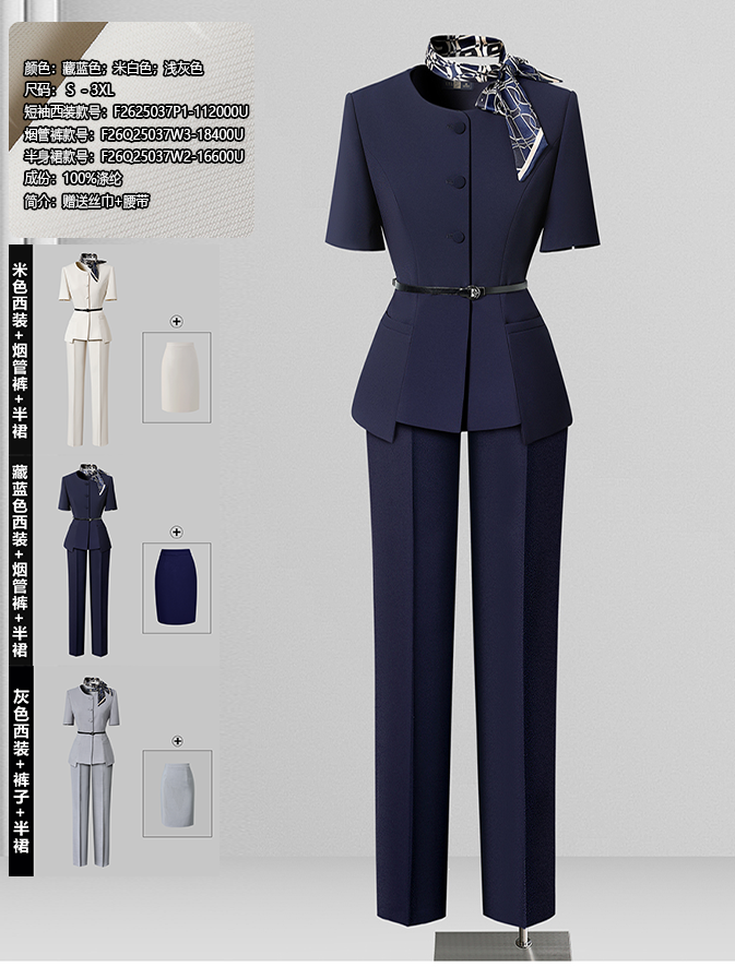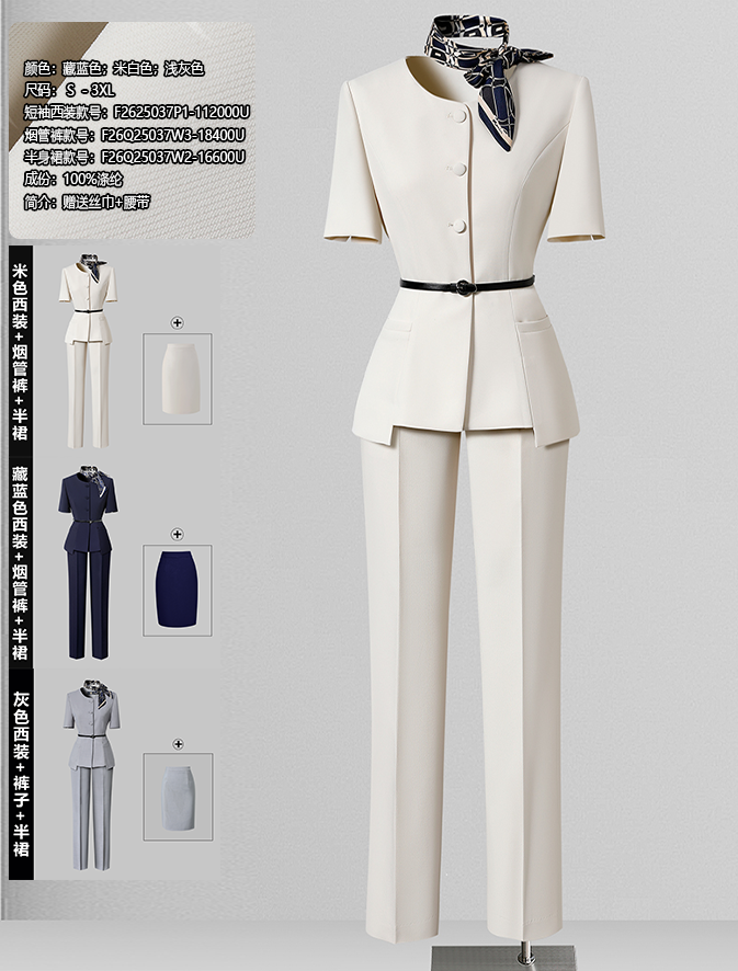 颜色:自选颜色和面料 面料:100%聚酯纤维 品牌:聚荣服饰 定制方式:量体定制 基础风格:时尚都市 服装版型:修身 适用季节:四季 领形:飘带 适用场景:工作&日常&会议 这是一款专为女士倾心打造的短袖西装,可根据需求量体定制